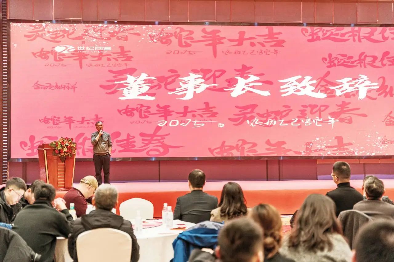 岁序常易,华章日新,在乙巳蛇年来临之际,世纪同昌集团2024年度表彰大会暨2025年新春团拜晚宴于1月19日在热烈融洽的氛围中隆重举行。同昌集团董事长陈正永先生出席活动并致辞,集团副总范华、陈昭阳,中生医疗总经理李东风,同昌冷链总经理崔光兰,同昌检验总经理谭辉,同昌德荣总经理李勇军及集团两百多名员工共同参加本次活动。