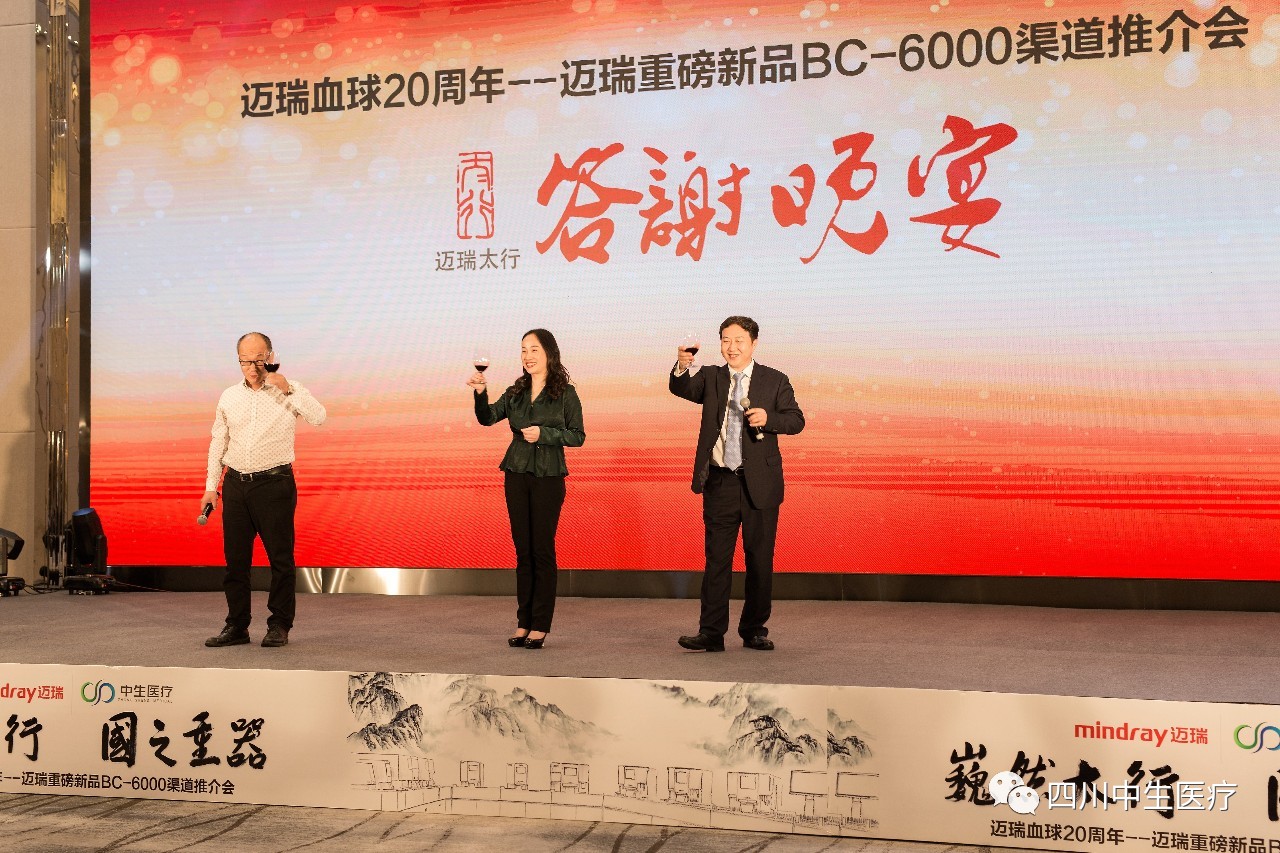 由四川中生医疗器械有限责任公司和深圳迈瑞生物医疗电子股份有限责任公司联合举办的“迈瑞血球20周年--迈瑞重磅新品BC-6000渠道推荐会”于2018年5月15日下午3点在成都茂业酒店JW万豪酒店成功召开。