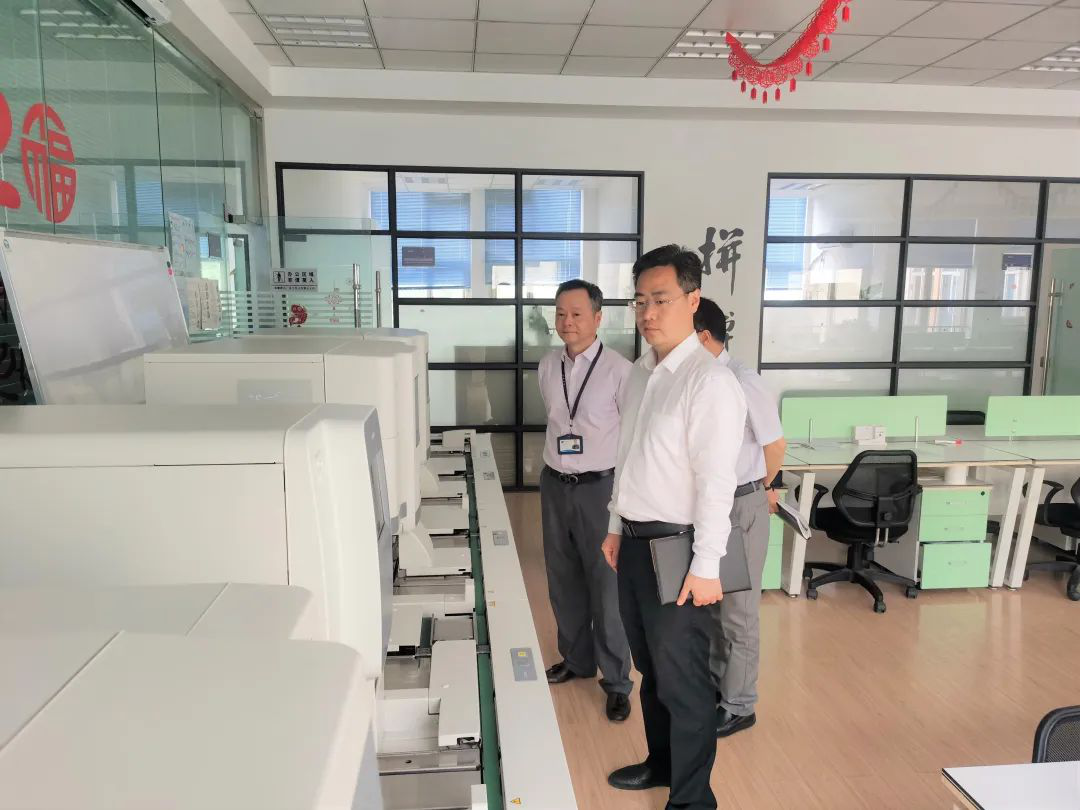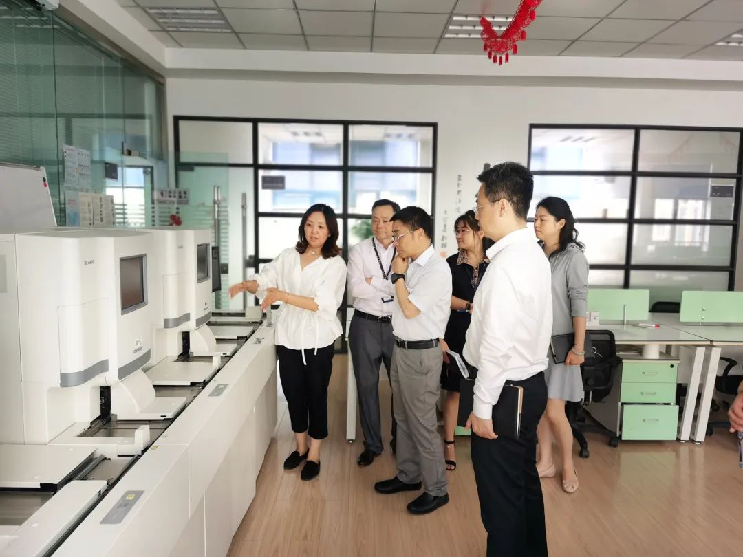 胡区长一行还参观了公司产品——血球流水线样机展示台,公司销售三区负责人赵凤澜经理为大家详细讲解了产品的基本情况、用途、优势和临床应用场景,尤其是在疫情期间血球流水线大大提高了标本检测的效率,能满足更多患者的检测需求。胡区长听完介绍后,对中生医疗在疫情期间做出的贡献表示大力地赞扬和认可。