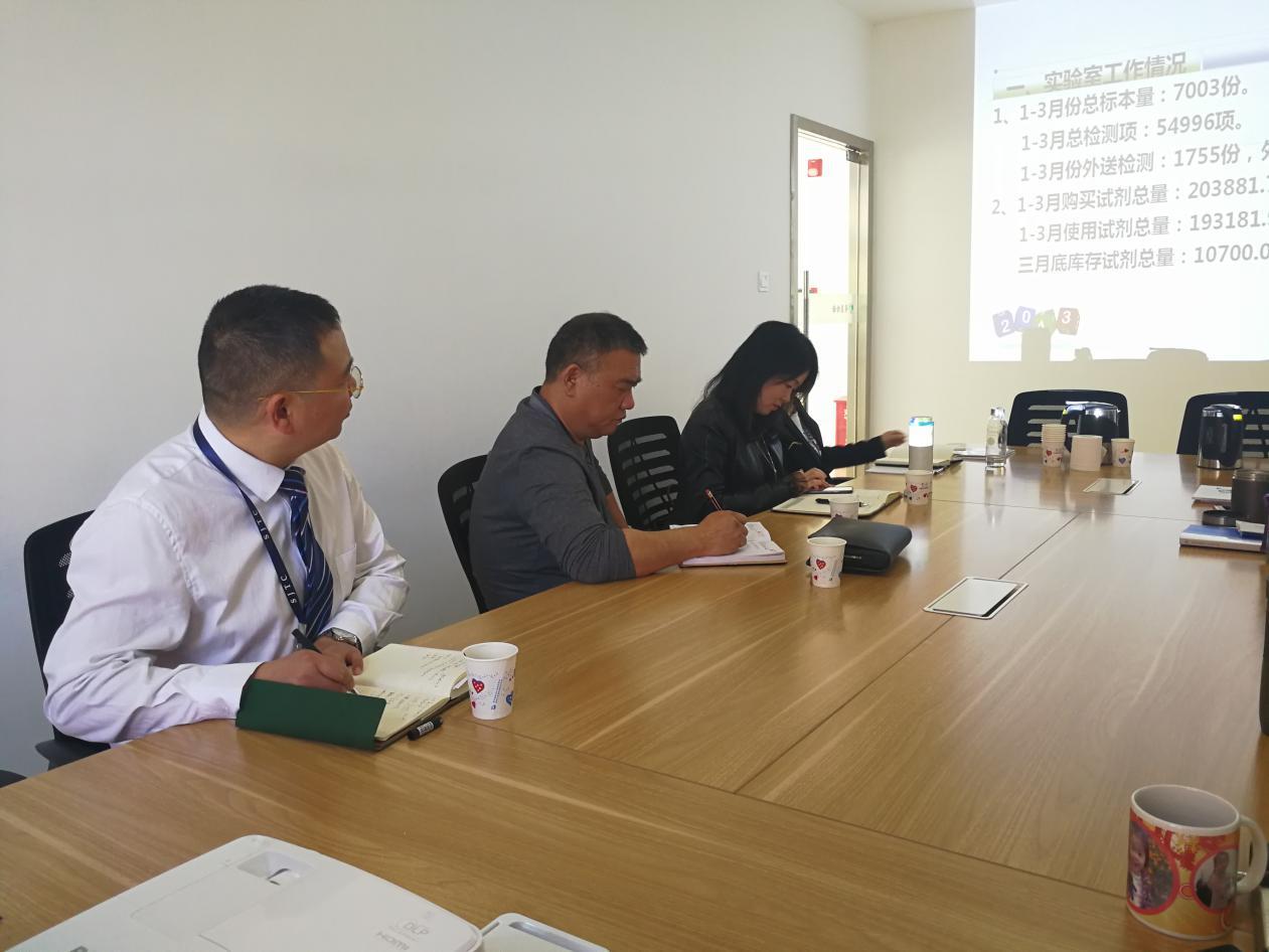 2018年4月8日,成都世纪同昌健康管理有限公司总部领导及相关部门领导到检验所召开一季度现场办公会。