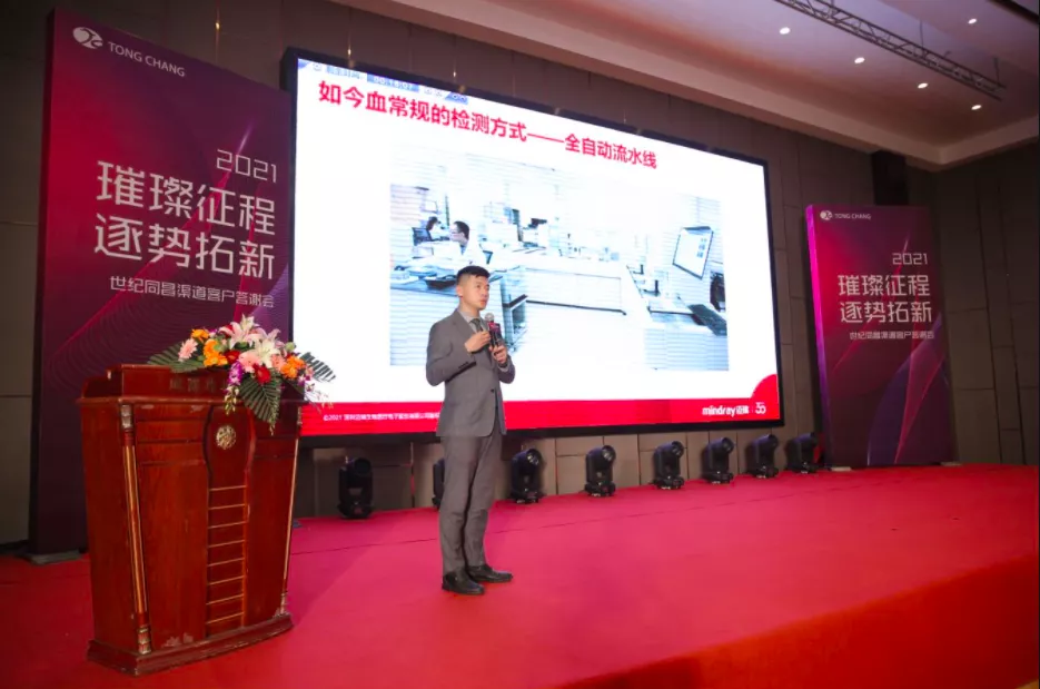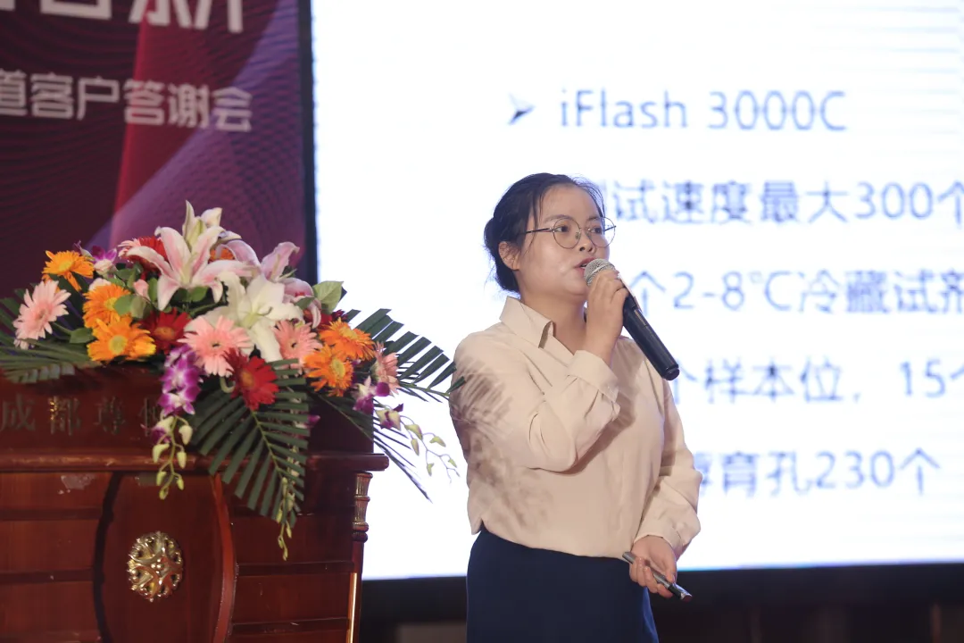 为了使广大渠道合作伙伴对代理产品的性能有更深层次的了解,答谢会还专门邀请了迈瑞医疗市场经理王阳、深圳亚辉龙市场经理陈萍、迪瑞医疗尿分产线总监张博及积水医疗市场经理邓倩就各自产品的优异性能及配套服务方案进行介绍分享。