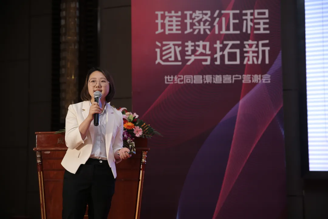 下午三点,答谢会在世纪同昌集团总经理宋琪女士的欢迎致辞中拉开帷幕,宋总首先对参加会议的广大渠道商和厂家长期以来对世纪同昌集团的帮助和支持表示了由衷谢意。