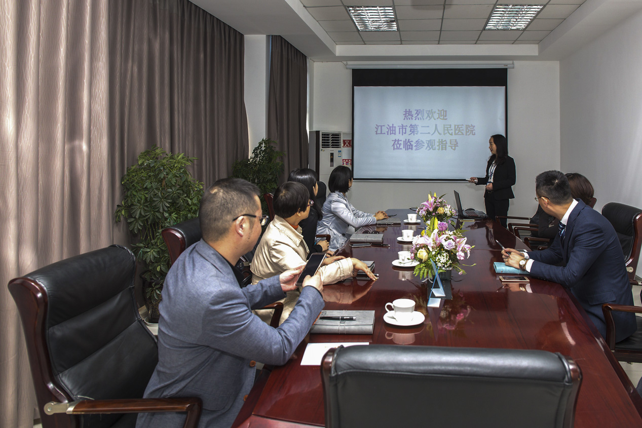 3月28日上午,江油市第二人民医院院领导一行莅临中生医疗参观指导工作,中生公司总经理宋琪陪同参观。