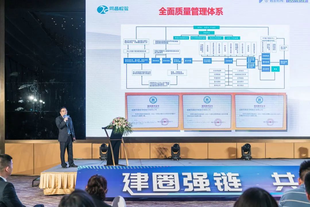 四川中生医疗器械有限责任公司总经理李东风先生受陈正永先生委托,向与会的嘉宾和合作伙伴表示了热烈的欢迎和衷心的感谢。他表示世纪同昌自成立以来,始终坚守事业初心,聚焦IVD行业,凭借对服务品质孜孜不倦的追求得到了合作伙伴的普遍认可与信赖。当前,面对政策的更迭和外部因素的影响,同昌集团有针对性地在建圈强链、平台化建设层面进行战略布局,未来集团将努力为合作伙伴们提供更优质、更完善的全流程服务,实现利益共同体。相信在“相互支持、互惠互利”的合作原则指引下,同昌集团一定能与各位合作伙伴一道取得新的更大的成绩。
