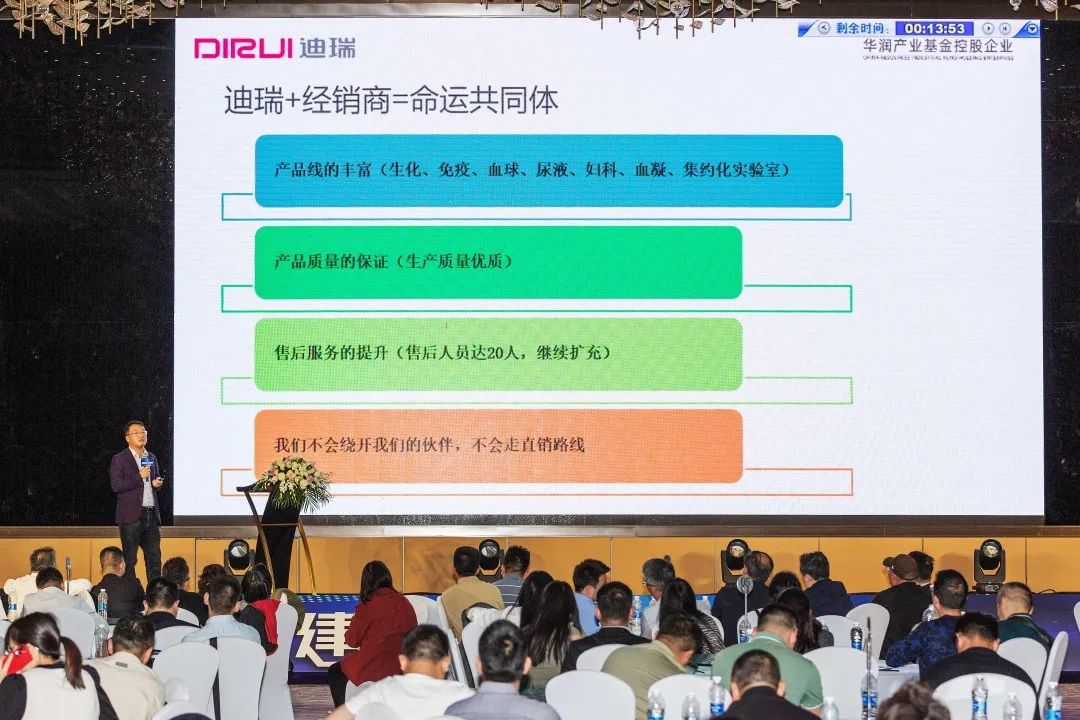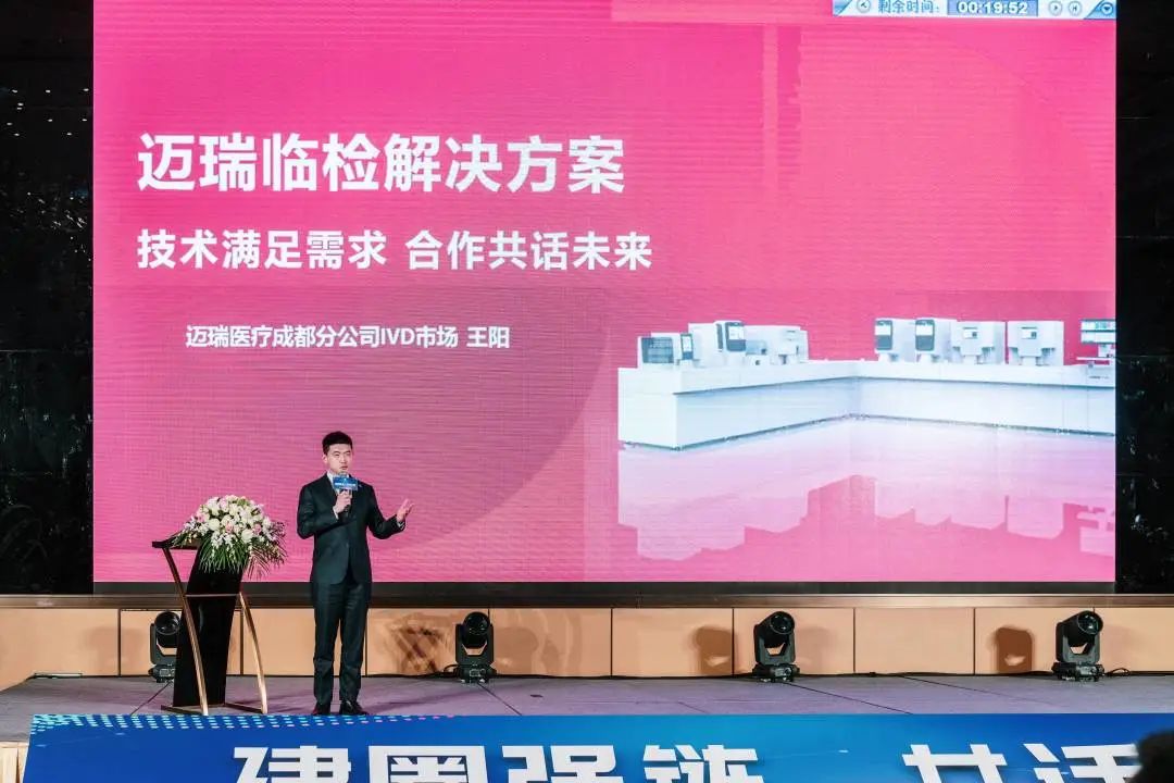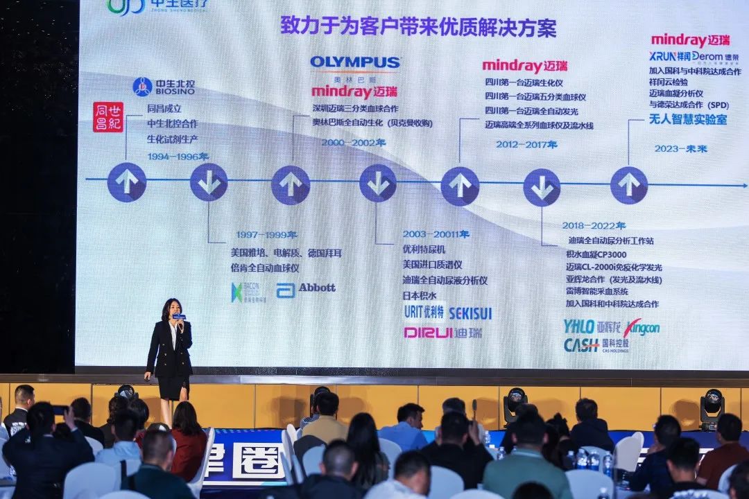 在产品宣介环节,亚辉龙市场部西南区总监陈萍、中生北控西区总监王红娟、迪瑞医疗四川省区经理雍帅东、迈瑞医疗成都分公司IVD市场经理王阳、中生医疗渠道部经理赵凤澜分别为大家分享了厂家产品介绍和“世纪同昌2023年分销政策宣讲”。